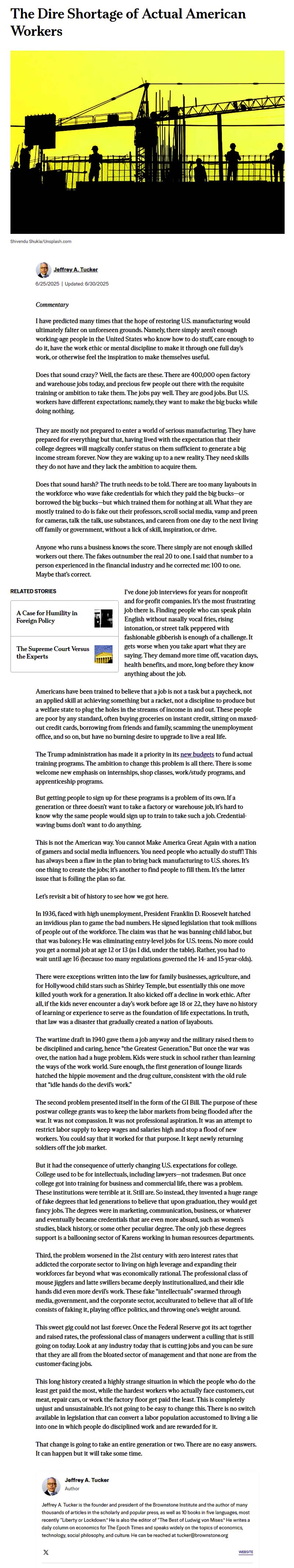 Article written by Jeffrey A. Tucker, June 30, 2025, EpochTimes