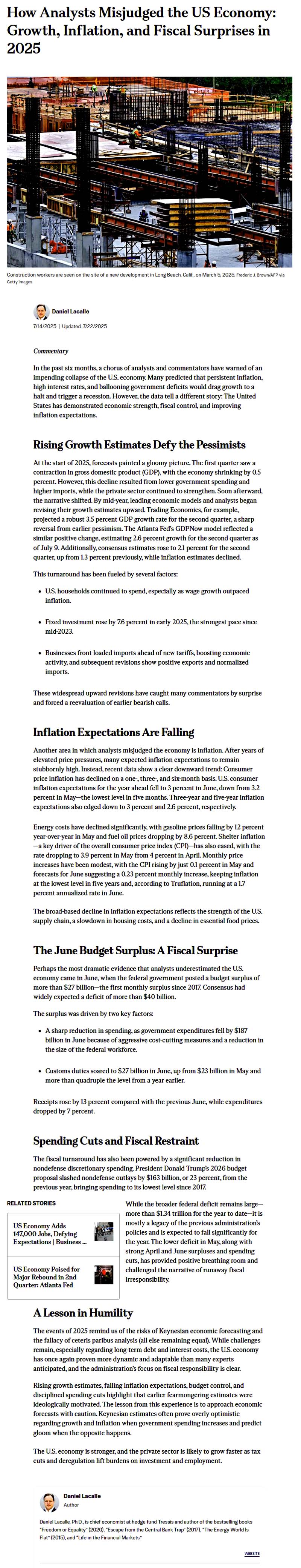 Article written by Daniel Lacalle, July 22, 2025, EpochTimes